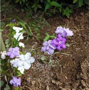 公園にニオイバンマツリが咲いていました😍 隅っこの方にひっそりと。 よく来ている公園なのにこの花壇初めて見ました。 でも、暑さの為か他には何も咲いてなかったです…。