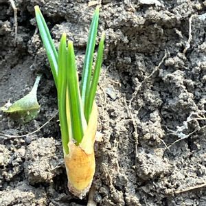 ムスカリ & ネギ 去年植え直したムスカリと 新たに植えたネギの根から 新芽が出て来ました🌱✨ 日中は雪のち雨です🌨️☔️ まさに三寒四温の春です😊♫