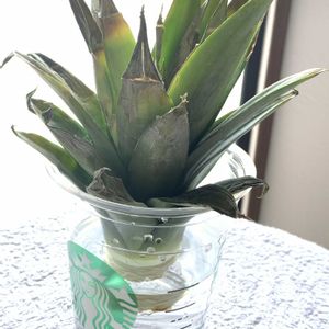 3/27スタバカップでパイナップルの水耕栽培開始🍍 ちょっと葉の状態が良くないので上手くいかない可能性大ですが運良く根が出てくれればいいな〜位な気持ちでやります🫡