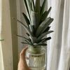 パイナップルの実の上部を2〜3センチ程度残して、葉の部分を切り落とします。下葉を何枚か剥いて、水耕栽培か土に挿して根を出して育てていきます。