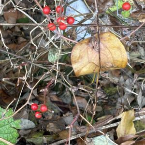 おはようございます ウォーキングで出会った 花と実 サルトリイバラの実 やっと見つけました 終わりに近いですね ハキダメギク 可愛いお花なのに 名前が残念😢 ワイルドストロベリー 花友に頂きました お花と実がついています 可愛いお花💕
