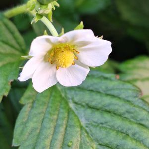 ワイルドストロベリー 咲いてます🌼 株元には新芽🌱 うぶ毛がいっぱい (ノ◕ヮ◕)ノ*.✧🍓