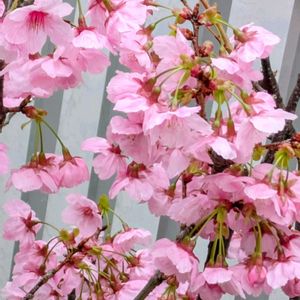 おはようございます(#^.^#) 10℃☔️/🌂 水撒きしてたら降って来てビックリでした。今は止んでます。 陽光桜🌸が満開🌸です。 根元にも二輪🌸🌸可愛い😍 以前花友さんから頂いたワイルドストロベリー🍓さんもたくさん鉢数が増えて可愛いお花が楽しませてくれてます🥰