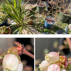 🏷️白い水曜日♡ ① ブルーベリー🫐のお花 ベルみたいに可愛い 違う種類で三鉢あります 防風林になっていたドラセナ🌿も カットしました✂️ ② ハーデンベルギア ワイルドストロベリー🍓 ③ 白い葉牡丹🥬 寄せ植えで主張してる お花も咲きそうです😊