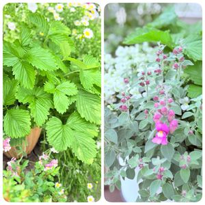 今晩は🌟 今朝のお花さん達❁⃘*.゚ 宿根金魚草が咲き始めました🩷 シルバーリーフ🌿.∘だけでも楽しめちゃうかな‹‹\( ˙▿˙ )/›› ワイルドストロベリー🍓 まだ葉っぱ☘ ̖́-だけです😅 窮屈すぎて実🍓をつけてくれるかな ( ૢ ⦁ ̱ꔷ ૢ ) .ᐣ 花盛りの初恋草.⋆𝜗𝜚𓈒ㅤ ⋆(*˘ー˘*).。.:*