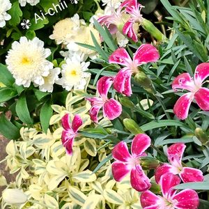 ・ダイアンサス いちごドロップ ①〜③ ・マーガレット ストロベリーホイップ ④ ・ワイルドストロベリー ミグノネッテ ⑤ ①寄せ植えに入れたダイアンサス 花弁数が安定しないのは肥料不足? ②斑入りシレネも咲き出しました🤍 ③マトリカリアは満開です🤍 ④2年目のマーガレットは お世話を怠ってたから株元ハゲハゲで 全体像をお披露目できません💦 ⑤いちご泥棒🍓🐦️の寄せ植えに入れた ワイルドストロベリーは 最近よく咲くようになりました💕 今朝1つ食べたら美味しかったです😋 シーズンなんですね🍓 🏷毎月15日はいちごの日 🏷白い水曜日♡ 🏷素敵な水曜日 🏷咲き始めのお花たち 🏷秘密の花園♡ 🏷花咲く乙女たち♡ 🏷スライドショー♪ 参加させて下さい🍓🤍( ꈍᴗꈍ)