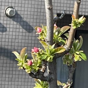 ①カリンの蕾どんどんついてきました💕 ②アンズの蕾もどんどん💕 さてここで、メジロっちーを探せ!🔍 ③見つけられたかな?🐤