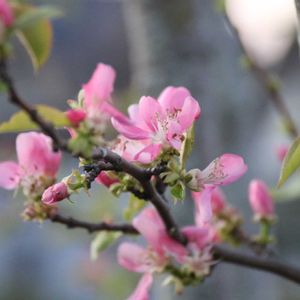 『豊麗』『唯一の恋』。「豊麗」は、春に淡く美しいピンク色の花を豊かに咲かせることにちなむといわれます。「唯一の恋」は、唯一本当の恋をした相手が夫である、女神アフロディーテの聖花とされていることにちなみます。カリンの実には咳止めの効果が期待できるといわれています。花期は4~5月です。