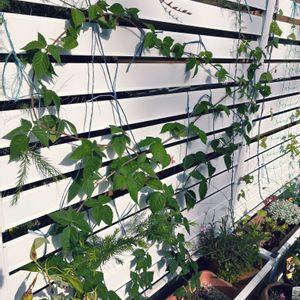 秋 雨の日のベランダ さてそろそろ部屋の中に移動する時期が近づいてくるな