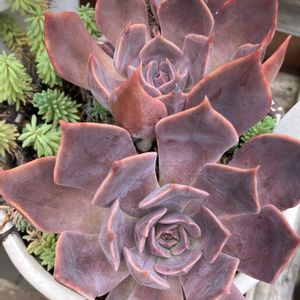 昨日、今日はとても涼しくて過ごしやすい日でした♪ 屋根なし遮光なしで元気な実家多肉さんたち✨ 遮光下でも⭐️になる子も… pic1 リジョイスさん💕 夏も冬も殆どこの色合い😊 pic2 ブロンズ姫さん✨ 寄せ植えで生き残ってます♪ pic3 ドラゴンズブラッドさんとブラックベリーさん✨ 夏顔のブラックベリーさんも好きです💖 pic4 桜牡丹さん🌸 ほんのり色付いてます✨ 焦げ知らずで安定の可愛さ💕 pic5 桜月さん🌸 この子は屋根下の時は緑一色でしたが、移動してから可愛くなってきました🥰 昨日はお墓に撒く除草剤を買いにホームセンターへ行ったら、入荷したばかりのセダムさんが〜キラキラしながらこちらを見てました♪ 寄せ植えの手直しに使う事を口実にお迎えしました😊