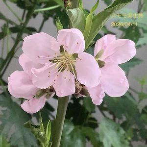 スモモ実生株(写真1)とモモ「白鳳」(写真2)が咲き始めました 先に咲いていたスモモの受粉樹「ハリウッド」は満開になりました(写真3) これら3つの果樹の花を同じ梵天で触り、それぞれ相互に授粉を行いました 2026/04/11撮影