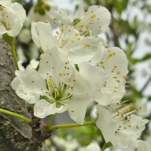 スモモ バラ科サクラ属 落葉小高木 中国原産 中国ではモモとともに代表的な花となっている。 日本には奈良時代に中国から渡来し、和歌などにも詠まれている。 和名の由来は、モモに比べて酸味が強いことから。 花期4月 葉の付け根に直径2cmほどの白い5弁花を1〜3個咲かせる。 花弁の先端は丸みを帯び、ウメやアンズの花とよく似ているが花柄が長いことが特徴である。 🏷️木曜日じゃなくても木 に参加させていただきます。