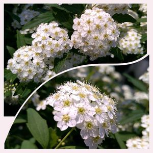おはようございます😊 🏷 今日のお花コデマリ💞 ① コデマリ💞 ② ユキヤナギ🌿 ③ ドウダンツツジ🤍 ④ スモモ😍 ⑤ シデコブシ😆