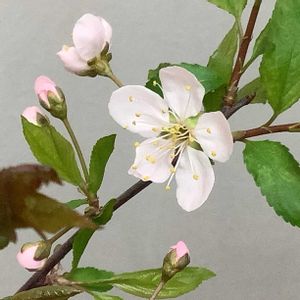 めちゃめちゃ小さいスモモの花。 四男(犬)の記念樹で昨年1歳になったときに植えました。