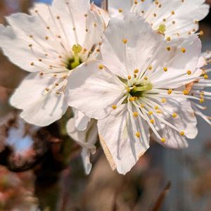 春風にゆらゆらと儚げに揺れているのは かの高級さくらんぼ佐藤錦です だいぶ以前にいただいた佐藤錦の種があまりに立派で鉢にばら蒔いていたのが大きい木に育って毎年可愛い花を咲かせてくれます