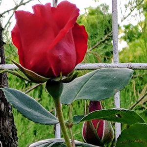 おはようございます。 今日のお花 バラ(赤) 3枚目の🍒も見てね!昨日の昼休み、職場ガーデンで見つけました。今の職場5年目にして😅😅