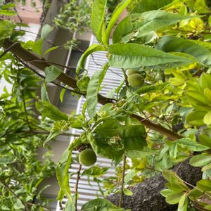 雨が降って元気いっぱいなハナモモ🌿可愛い実まで付けちゃって🫒…去年は単なる棒だったのに…成長早いなぁ😳
