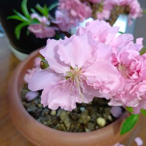 花桃が咲いた🌸 昨年の桃の節句、切花の代わりに購入した特価品の鉢植え🪴 コンパクトに育てたくて少し大きめの鉢に植え替えて育てていたら、今年も早々に蕾をつけ少しずつ咲き始めた🌸 この分だと今年の桃の節句にも満開の花を見せてくれそう🩷
