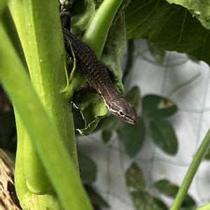 昨日オクラの葉っぱの上に トカゲがいた 思わずパチリ