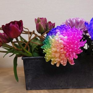 少し寒さが緩んできました😄 今週はレインボーなマムが主役です。 マム、チューリップとキウイです。 水不足が深刻です💧 まとまった雨が欲しいです😢