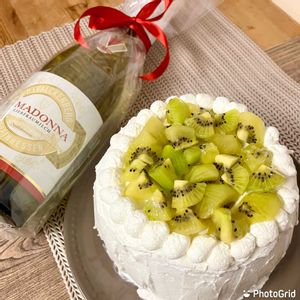 自家製キウイ🥝のシフォンケーキ🎂を作ってくれた😃。 私事で恐縮ですが、今日は◯◯回目の結婚💒記念日。 今夜は二人の思い出のワイン🍾でささやかなお祝い予定🥂。 今年も洒落たプレゼント🎁はないが、いつも感謝はしてる🙏。