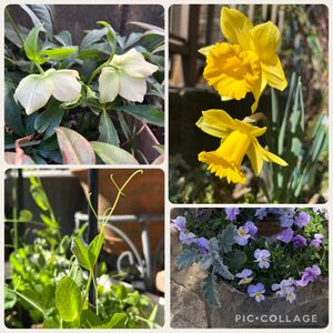 おはようございます😃 今日は、晴れ時々くもり 気温は、➖3度から9度の予報です。 フリル咲きパンジー シェルブリエ 花数が増えて来ました♪ 玄関先で頑張ってます。 パンジーの寄せ植え 3種類のパンビ達 名も無い花でも、こんなに鮮やかな色を見せてくれます♪ かわいい色の子を代表にして😊 スナップエンドウ 種蒔きが、遅かったのと乾燥気味で、まだこれくらいの成長です。 朝方迄、マイナスの気温でした。 昼間にお日様が出ると、少し🤏は暖かくなると思います。 楽しいはずの週末を雪❄️でご苦労されてますね。 お身体に気をつけてお過ごし下さいね😊❣️