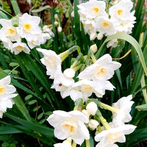 おはようございます🎶 昨日は雷と雨が酷かったです😰‼️ 1️⃣ナルキッスス パピラセウス! ほぼ満開となりました❗ 咲き始めも書きましたが、水仙の中では、結構匂いがきついです😅💦 2️⃣さくらんぼの花! 古木であちこち虫にやられてますが、今年も花が咲き始めました🥰‼️ 3️⃣クリスマスローズ! 南側のクリスマスローズが、だいぶん咲いてます🎶 夏にはブルーベリーの葉っぱが日陰を作ってくれます😉🎶 4️⃣スナップエンドウ! 花も咲き始めて、実の収穫もポチポチと始まりました🎶 春の野菜は甘いですね🥰‼️ 昨日サラダに入れてさっそく、いただきましたよ😋