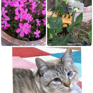 こんばんは🌃 今日はニャンニャンの日でしたね🐱 1⃣シレネピンクパンサー スナップエンドウの花 我が家のソラさん♀🐱 2️⃣スティックブロッコリーの花 野菜を植える都合で綺麗なのに抜いちゃうのは勿体ないので鉢上げしました 種が採れたらいいなぁ💛 3️⃣コンボブルス 4️⃣ネモフィラ