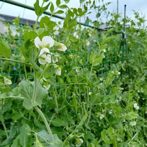 おはようございます☀️ スナップえんどうと絹さやえんどう なんかめっちゃ大きくなりました✨ 暖かい日が多いけど、風が強くてポキッといっちゃうんじゃないかと心配