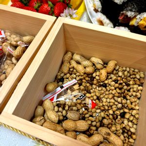 節分✨ 豆まき⚪︎ 鬼は~外⬜︎⚪︎⚪︎⚪︎👹 福は~内⬜︎⚪︎⚪︎⚪︎✨ 今夜は豆まき🖐️ 今年の恵方は南南東 ③⑤啓翁桜も葉桜に🍃