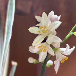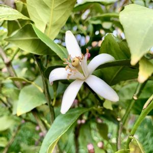 レモンの花 雌花と雄花が一緒に咲いてるの初めて見ました!! すごい!! そしてもう雌花が受粉してる😂 室内なのに誰かぶつかったかな?
