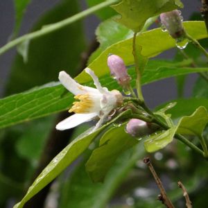 雨の朝 レモンの花が咲いてます。