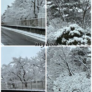 1、2、3枚目:夜中はこんなに積もるような感じではなかったのに、朝起きたら雪国でした。投票にを終わらせ少し遠回りして雪景色を楽しみながら、ケーキと焼き菓子を買って家に帰りました🥰暖かい珈琲と一緒にいただきます😋。寒い中投票に行ったご褒美なんちゃって〜🅦ͅ🅦̨🅦̨当たり前のことなんですけれどね。せっかく咲いた紅梅と河津桜、お花に雪が乗って寒そう、不平不満を言わずに偉いわァ〜。 4枚目:四季咲きバラ🌹 ブルームーン やっと本来の色が出てきました。あとは香りを待つのみ💜 5枚目:蝋梅の切り花の枝を2本、水栽培にしていたら、小さな緑色の芽が出てました。生命力を感じますね。緑色の葉はオリーブです。挿し木にするより水に入れて様子を見た方が発根率が高いような気がします。