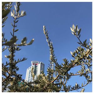 こんばんは ①オリーブ越しの 大阪府咲洲庁舎 ②大阪南港ATCで 八重咲きの水仙と↙️ホトケノザと久しぶりに見たマメカミツレ ↗️アメリカフウロの葉が紅葉していて 可愛かったです❤️ ③大阪南港ATCに滞在中の ❤️💙ミャクミャク様❤️💙 万博ではありがとうやで