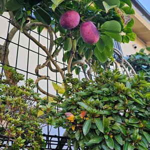 11月に投稿し忘れた アケビです 庭のフェンスに 実ってました 隣の林に勝手に生えたのだと思います