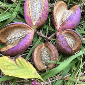 「アケビ」 やっと 裂開 熟してきました 咲くやこの花館2025/11/20