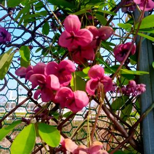 おはようございます😊 アケビ アケビ科 今年もご近所の月極駐車場🅿️フェンスに絡んで咲き始めました💕 雌雄異花どちらも可愛いです😍 3枚目は色の濃い5葉アケビ💜 🏷️日だまりの日曜日 🏷️日曜日は日本を感じる和の花 🏷️ビューティフルサンデー