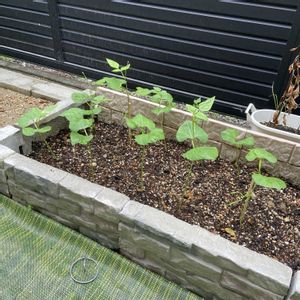 先日プランターから地植えに移動させたインゲン🌱 雨にも耐えた☔️