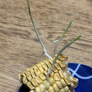 とうもろこし🌽 水につけて数日・・・ 飽きるほど食べて、甘くてみずみずしくて、最後の1本を大事にしていたらシワッとしてしまったので水に浸けてみたのです。 復活したら食べる予定が 🌱👀🤯 発芽&発根🤣 続きはまた来週😊