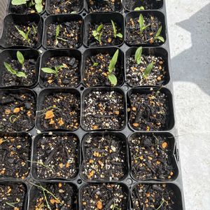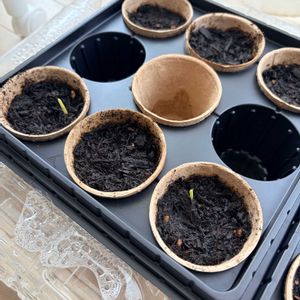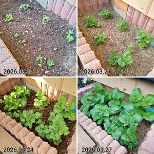 【1枚目】早めにスタートしたジャガイモ🥔 2月21日に定植し3月17日に出芽していて、日に日に成長し、定植から35日目の3月27日にはこんな感じに。モリモリですね😆 このあと翌日に土増して、ぼかし肥料も埋めておきました。さらに伸びたらもう少し土増しするつもりです。 【2枚目】湯たんぽ保温蒔きしたミニトマト🍅、バジル、青シソ🌿 本日、ミニトマトとバジルに本葉を確認しました😆 青シソは遅れて発芽したのでまだまだ。 【3枚目】湯たんぽ保温蒔きしたトウモロコシ🌽 現在、本葉1枚目が伸びているところ。7.5cmポットです。 すでに底から根が見えているので早く定植したいけど、まだ寒いかな? 定植適期は本葉3〜4枚くらいらしいです。 【4枚目】イチゴが開花中🍓 毎日筆で受粉しています。楽しみです。ムフフフ🤭 先日、開花した花にアブラムシを見つけ、よく見たら葉裏にも! 急いで油石鹸水をスプレーし撃退しました。効きますわ、油石鹸水!👍 「作り方:水200cc+食器洗剤0.75ml(2〜3滴くらいにした)+油1.5mlをスプレーし、念のため(葉が窒息しないように)15分後以降にシャワーで洗い流す」 【5枚目】ショウガ🫚 先日、直売店で立派な食用新生姜が売っていたので植えてみようかなと購入。 せっかくの機会なので、ホームセンターで種ショウガ(黄金ショウガにした)も買いました。現在、キッチンペーパーにくるんで段ボールで芽出し中。 今季はショウガにチャレンジでーす😁💪