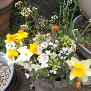 2026.3.4〜23 撮影 我が家の花と野菜達 1枚め:雪割草 3鉢5種 ↙️:今年買ったミックスで1鉢に3種類 2枚め:クリスマスローズ 赤13、白9で今年は紅白で沢山咲いてます 3枚め:結局巻かなかった白菜10株 次々に上がってくる蕾を食べてます😋 4枚め:遅くに種から育てた小根🤣(大根) これでもかと言う程、曲がって分かれた根に 立派な葉っぱ🤣🤣 5枚め:いつもの歯医者さんの花😻