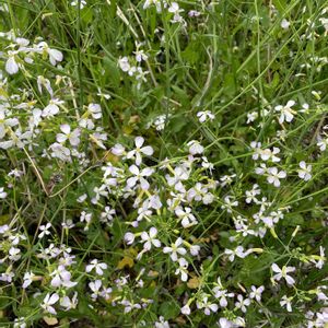 ①②大根のヘタを植木鉢に置いたら 花が咲いたよ 人参のヘタの花は1メートルを超えたけど 大根の花は10数センチの所で咲きました ③キュウリグサも可愛い ④ちょっと大型の芝桜です 今度はゴボウのヘタを置いてみようかな?