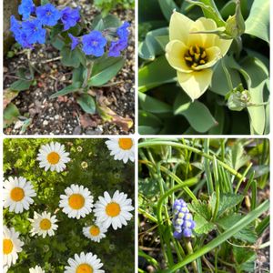 こんにちは☀️ 春が来るとツイツイ庭に出てしまう🥰 ①↖️プルモナリア お初✨✨✨ ↗️昨年のトホホのチューリップ🌷 ⬇️毎年元気です ②⬆️昨年より沢山咲いてる〜🙌 ⬇️咲いてくれるとホッとする ③⬆️昨日やっと収穫、切り干し大根💪 ↙️今日3度目の土筆 ↘️年末もらった八朔ジャム3回目 ④⑤16日お友達とランチ😋