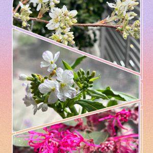 上から 咲き始めたジューンベリー 畑で花が咲いてしまった大根 紅花トキワマンサク 昨日の暖かさで大分咲き進んできました🥰 我が家の庭も楽しくなってきました❣️