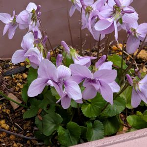貰った大根、あら!とうたちして花咲いてきた🙏ツルニチニチソウの花2色なってるよ、長年咲かなかった、待ち遠しかったよ嬉しい😄🥹椿挿し木2色も咲きそう!