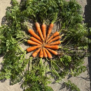 【1枚目】プランターニンジン🥕でちょっと混み合っていた部分があったのでお試しで収穫してみたら、セクシーニンジンでした😂 9月10日種まきから146日目/4ヶ月と23日目。 全長10cmくらいかな。思ったより大きくなったなぁという印象。 品種はサカタさんの「畑で長持ち人参」なので、収穫時期をあまり気にしないでよいところが初心者には安心😌 食味は農協の直売店で買う新鮮なニンジンと同じで、みずみずしくて少し甘みを感じます。普通に美味しいです☺️ ただ、感動するほどではないかな😅 次回はせっかく育てるんだから美味しい品種を選びたいです。以前、直売店で買った「恋ごころ」がめっちゃ美味しかったので育ててみたいなー。タキイさんの品種なんだけど、一袋700円超えで高いのが難点😣 そもそも今回の種がたくさん余っているから消費しないと……。 【2枚目】今回収穫したのはこの3株並んでいた真ん中です。こんなに株間が狭くてもそこそこ育つんですね。 日々、少しずつ間引き収穫していこうと思います😋