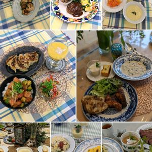 Googleフォトが「似ている写真や動画」と題してコラージュしてくれました🍀😊✨2022年〜2025年🧑🍳お料理教室にお花が飾っていました~♬♬ハーブ教室🌿自家製のお野菜🥕ψ(´ڡ`♡) オイシー♪