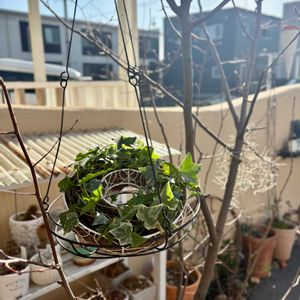 昨年から育てるリースにハマり中 お花の定期便で届くアイビーは長持ちするので、キッチンカウンターの花瓶に挿しておくと、勝手に発根します(2枚目) 気づけばアイビーがこんなにたまってました(3枚目) やり方はわからないので自己流ですが、リース型のプランターに植え込み、表面だけ水苔でおさえ、ワイヤーをU字ピンのようにしてツルをとめました(4枚目) リースハンガーが本当に便利! しっかり根が張るまで横にしておきながらも、お庭を彩ってくれます。 ジューンベリーの枝につるしました(1枚目)
