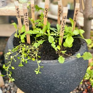 クリスマス準備もまだですが、先にお正月準備。 今年も春の七草の寄せ植えを作りました。1月7日まで育てて、七草粥にします。 3枚目は植え替え前の様子。 去年の寄せ植えが弱肉強食でハコベだらけになってました。 数年前はセリだらけになってたような… 長く育てるのを考えたことがあるけど、単品の苗が見つからず、結局七草苗セットを購入するのが安上がりなので、一年ごと植え替えすればいいかなと思ってます。