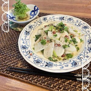 ((*´︶`*))ゞ春のお野菜で~⚪️🥬 カブちゃんの可愛いサラダ🥗 ͛.* 🌶ベペロンチーノ 味だよ♪😉💕
